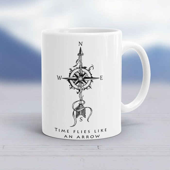 Caneca Porcelana Wevans Time Flies Like an Arrow Único