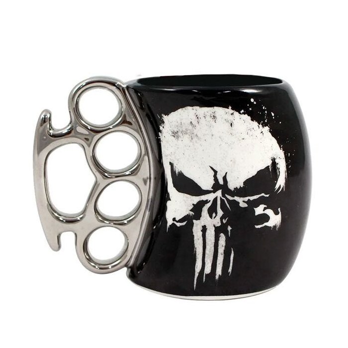 Caneca Soco Inglês Punisher - Justiceiro Uma caneca para impor respeito a qualquer momento do dia. Com capacidade para 350 ml, a Caneca Soco Inglês Punisher é ideal para os amantes de quadrinhos e pra quem adora começar o dia com muito estilo. Feita de cerâmica, ela possui um visual super moderno e uma linda estampa do símbolo de caveira do anti herói da Marvel, O Justiceiro. Ideal para tomar café, chocolate quente, chá ou sua bebida preferida. Ótima opção como presente criativo. Especificações: Altura: 10 cm Largura: 12,5 cm Profundidade: 9 cm Material: Cerâmica e aço Capacidade: 350 ml Instruções de uso e conservação: Lavar com água, esponja macia e sabão neutro. Não utilizar produtos químicos ou abrasivos. Não utilizar no microondas nem lava louças.
