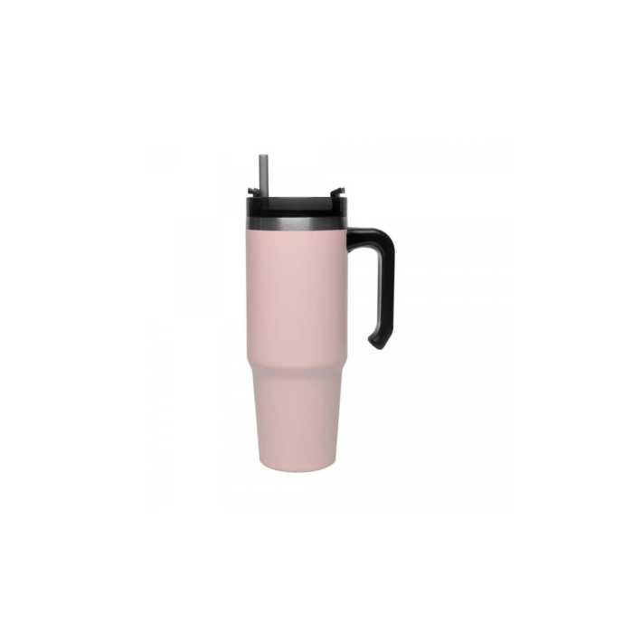 Caneca Térmica Parede Dupla Slimterm com Base Ergonômica e Canudo Rosa 890ml - Wolff