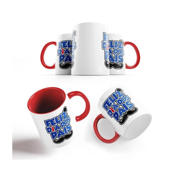 Caneca Vermelha Feliz Dia Dos Pais Avô Bigode Chapéu Antigo