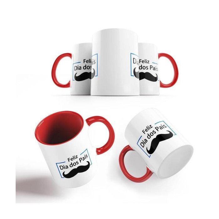 1x Caneca Vermelha Feliz Dia Dos Pais Pai Avô Bigode Grosso