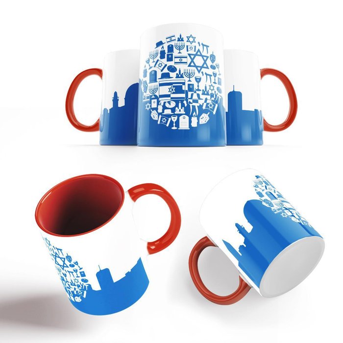 Caneca Vermelha Judaico Imagem Israel Simbolos Judaicos
