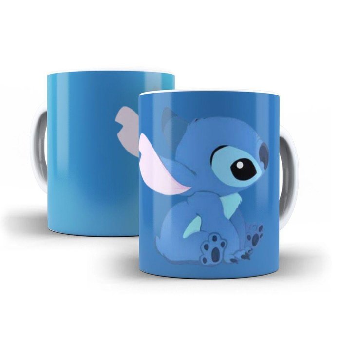 Caneca Xícara Stitch e Angel em Cerâmica 325ml