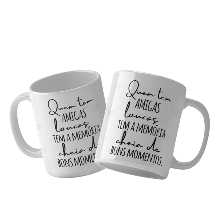 Caneca personalizada de porcelana de alto brilho, com interior e alça Branca Coleção Amizades.