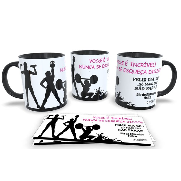 Caneca personalizada de porcelana de alto brilho, com interior e Alça Preta Coleção Profissões.