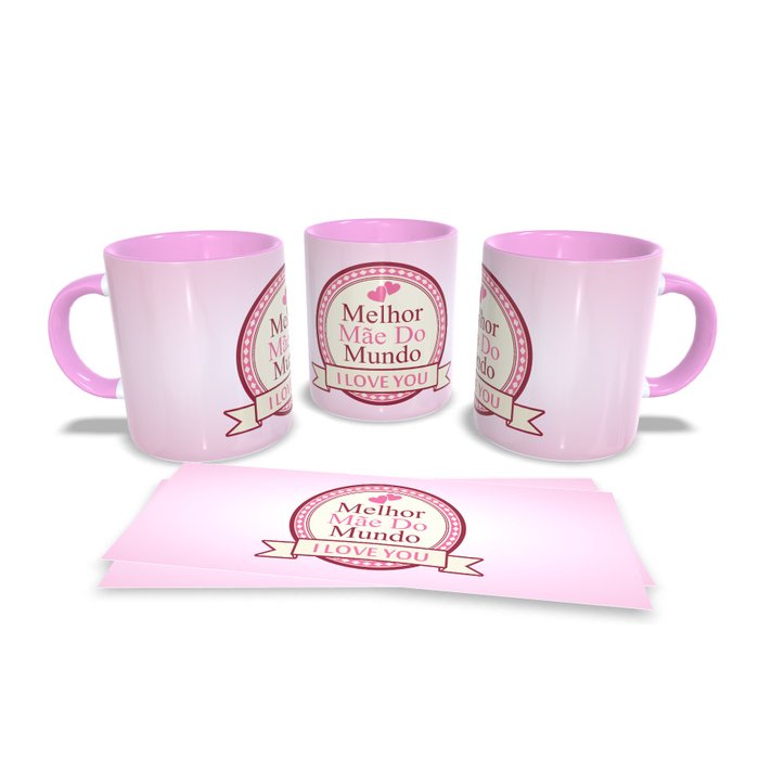 Caneca personalizada de porcelana de alto brilho, com interior e alça Rosa com linda Estampa da Coleção dia das Mães.