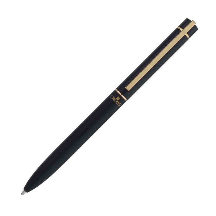- Marca: Crown - Cor do corpo: Preto com detalhe dourado - Cor da tinta: Azul - Espessura da ponta: 0,8 cm - Comprimento: 13 cm - Garantia: 12 meses