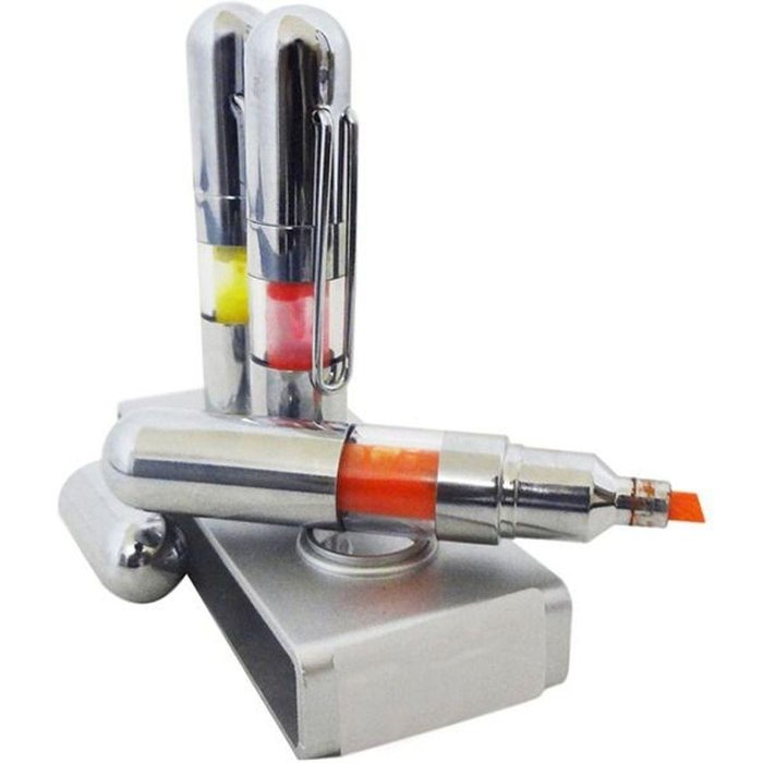 Caneta Marca Texto Brinde 36 Canetas E 12 Suporte Escola Casa Características:12 KITS DE 3 CANETAS MARCA TEXTO E 1 SUPORTE CROMADO CADA KIT CONTÉM 3 CANETAS MARCA TEXTO E 1 SUPORTECADA KIT CONTÉM 3 CANETAS MARCA TEXTO E 1 SUPORTECADA KIT CONTÉM 3 CANETAS MARCA TEXTO E 1 SUPORTECOMPRA REFERENTE A 12 UNIDADES DESSE KIT ACIMA, OU SEJA, TOTAL DE 36 CANETAS E 12 SUPORTES.Pode Ser Dado Como Brinde Em EmpresasModerna Casa Escola Escritorio BaseModerna Caneta marca texto para ser usado no escritorio , escola ou mesmo em casaCom design diferenciado e aspecto cromado deixa o ambiente com visual fino e eleganteCaracterísticas:- Aspecto espelhado- Visual Cromado- kit com 3 cores (amarelo,roxo e laranja)- Base para apoio- Ponta média- Visualização da carga de tinta Dimensões:Altura: 11 cmLargura: 4,5 cmComprimento: 12 cm3 Meses De Garantia Contra Defeitos De Fabricação*120 Mod: BH8086