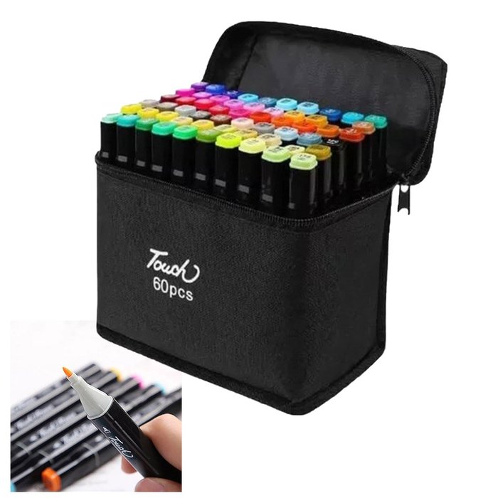 As canetas são de ponta dupla, duas pontas padrão, grossa e fina. Os marcadores são a base de álcool e não contém cheiro, ideal para crianças.