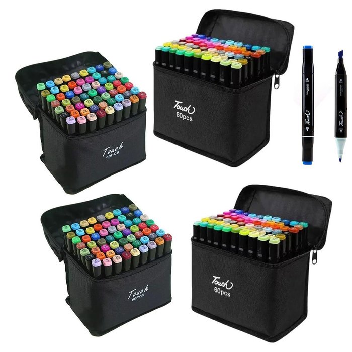 Canetas Canetinhas 60 Cores Permanente Kit 4 Uni Marcador Desenho Arte Pintura Curso Escola Faculdad