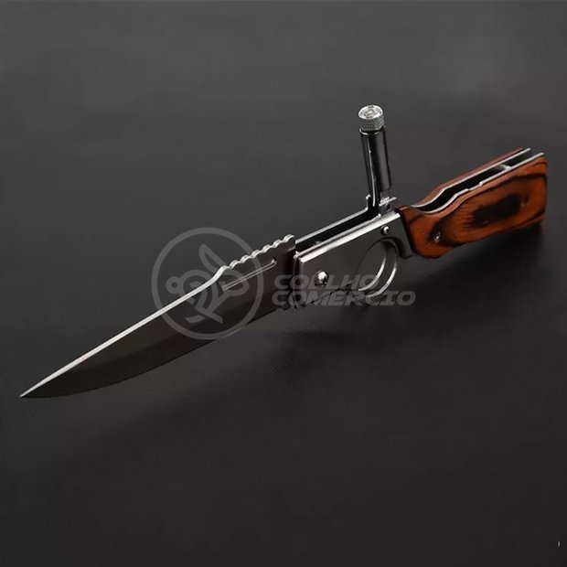 Canivete Retrátil este modelo de canivete é excelente para utilização em trilhas, pescas e acampamento. Além de ser um excelente canivete com ótima qualidade e acabamento, ele possui uma pequena lanterna de led, é retrátil e tem botão de segurança!
