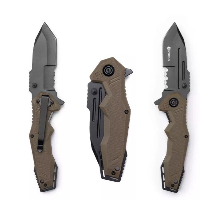 O Canivete Arkin compõe o portfólio de canivetes táticos INVICTUS. Possui lâmina em aço inoxidável 3CR, empunhadura com cabo em fibra de vidro, clip tático, alça porta-fiel, abertura fácil e rápida, assistida por mola (spring assisted).