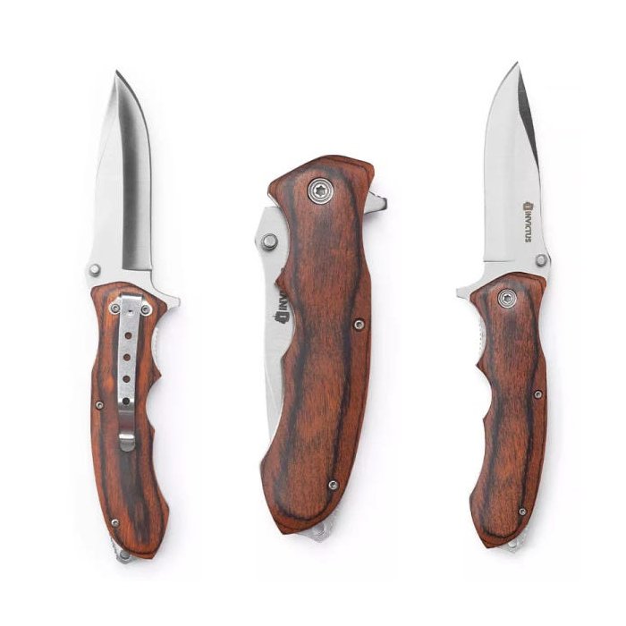 O Canivete Skara compõe o portfólio de canivetes táticos INVICTUS. Possui lâmina em aço inoxidável 420, cabo em madeira natural, clip tático, alça porta-fiel e abertura fácil e rápida, assistida por mola (spring assisted).