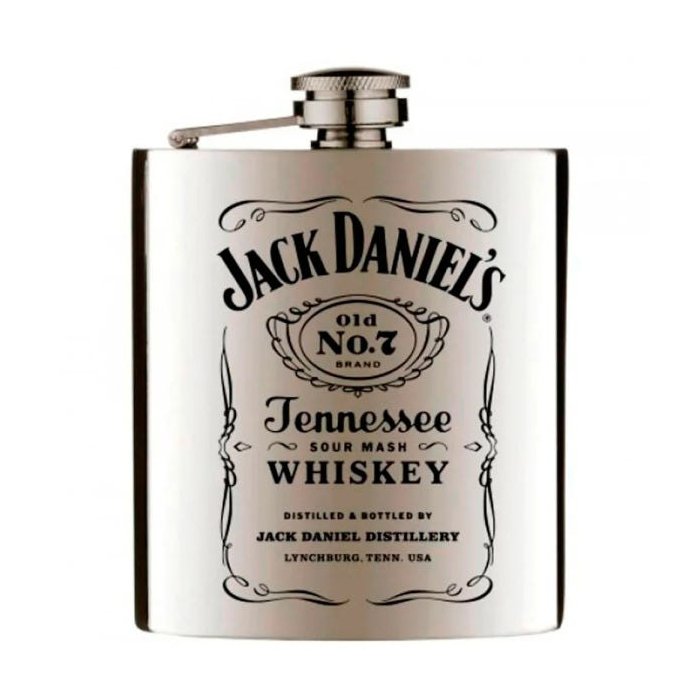 Cantil Porta Bebidas de Bolso Jack Daniels Prateado e Preto 240 ml