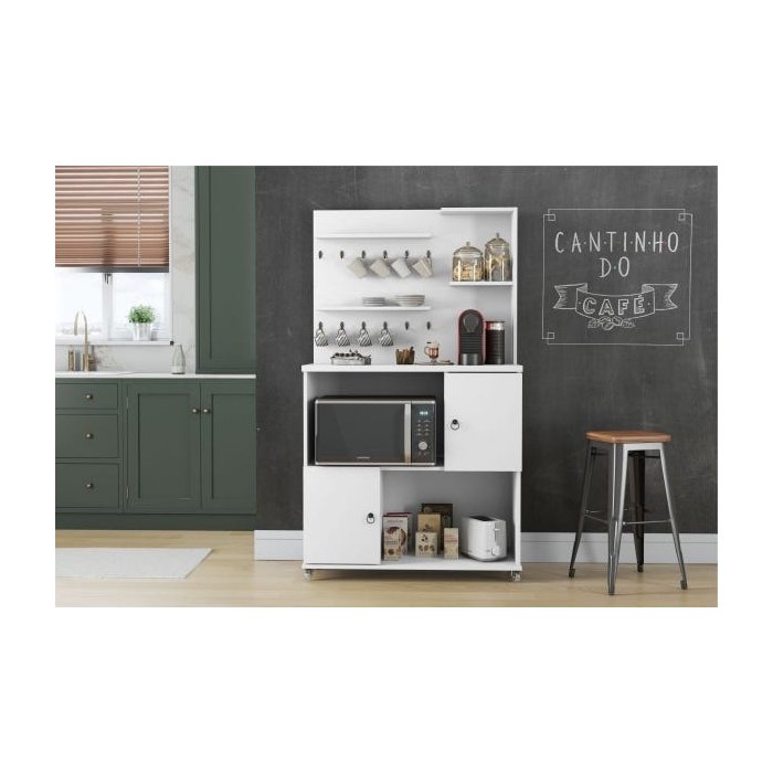 O Cantinho do Café Aconchego possui 4 prateleiras, 2 nichos e também 2 portas com muito espaço para organizar seus utensílios e tornar sua vida mais prática e ágil.