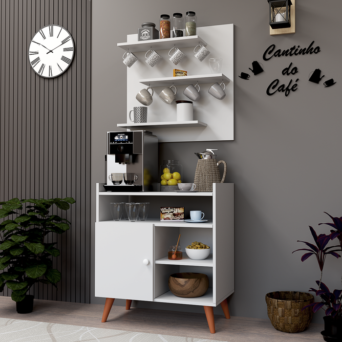 Cantinho do Café Aparador com Prateleiras e Painel para Xícaras