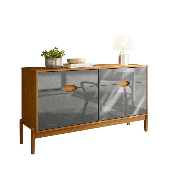 Para ambientes como sala de jantar e sala de estar, o Buffet Intense Movelove é o móvel perfeito, com cantos arredondados e pés de madeira