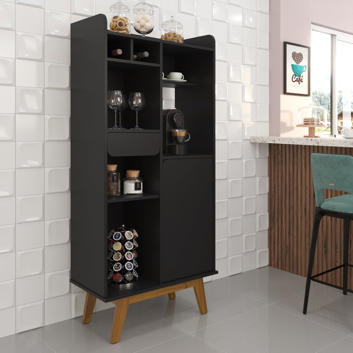 Uma das principais características do Cantinho do Café Siena é a sua gaveta com puxador clean, do tipo corrediças metálicas, que proporciona um deslizar suave e facilita o acesso aos seus utensílios e acessórios de café. Além disso, o móvel possui uma porta com puxador cava, que adiciona um toque moderno e discreto ao seu design.
