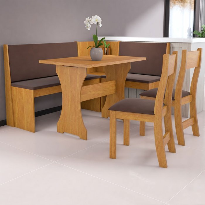 Canto Alemão Romeo 6 Lugares Mel/Fume - Viero Móveis Marrom