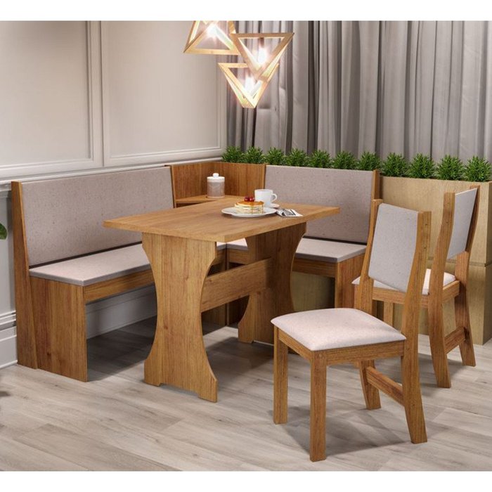 Canto Alemao Vieiro 2 Cadeiras Mel/Linho Amendoa