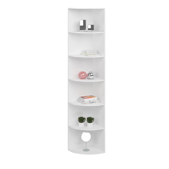 Cantoneira com 5 prateleiras arredondas (6 divisões) para colocar objetos diversos de decoração ou uso pessoal. Vendida avulsa, pode ser instalada na lateral de nossos guarda-roupas e dormitórios.