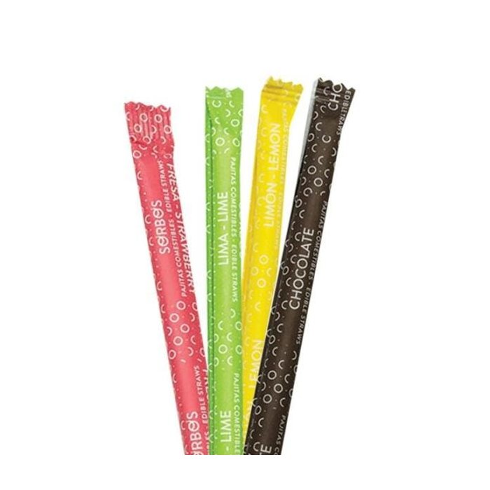 E agora temos uma NOVIDADE! Canudo Comestível Sorbos Combinação Perfeita: 200 Unidades de sabores sortidos (morango, chocolate, lima e limão) em uma única caixa para você!