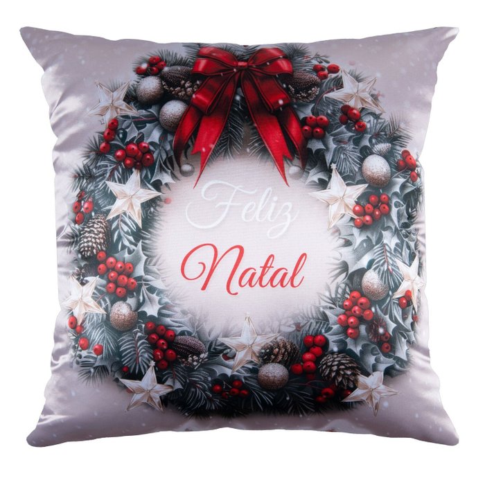 Capa Almofada Cetim Guirlanda de Natal 43x43cm