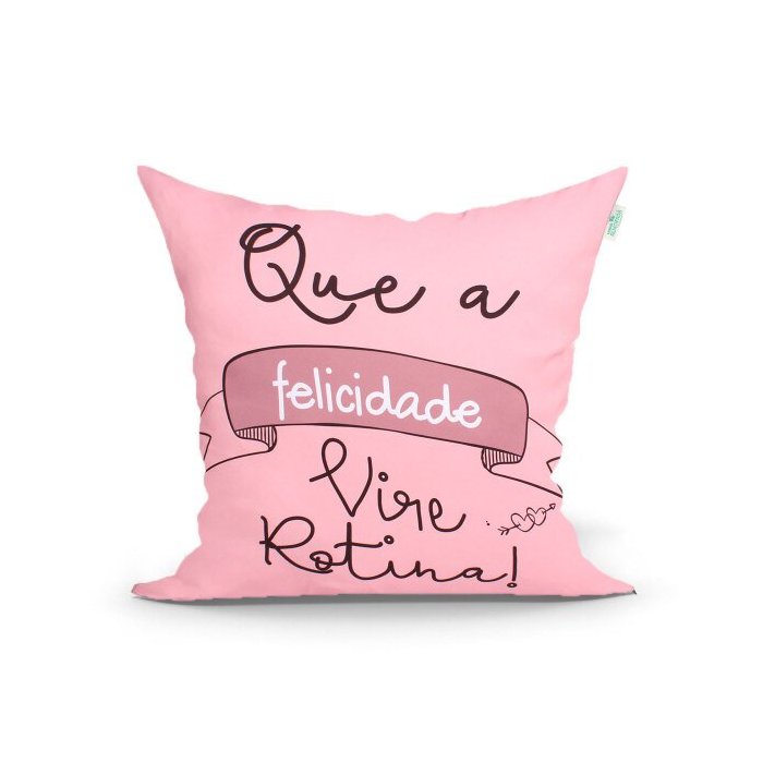 Capa Almofada Rosa Que a Felicidade Vire Rotina 45cm x 45cm com zíper