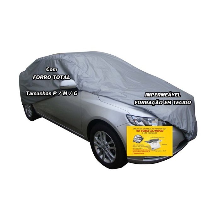 ?nica Capa dispon?vel no mercado com TNT (forro) colaminado e n?o costurado, uma exclusividade Carrhel. S?o 3 camadas unidas por processo automatizado, proporcionando mais qualidade, resist?ncia e durabilidade. Fabricada com material de alta qualidade e resist?ncia que impede qualquer tipo de dano na pintura do carro. Utilizada em Carros com at? 4,05? x 1,36 m (Comprimento x Altura).Informa??es t?cnicas
