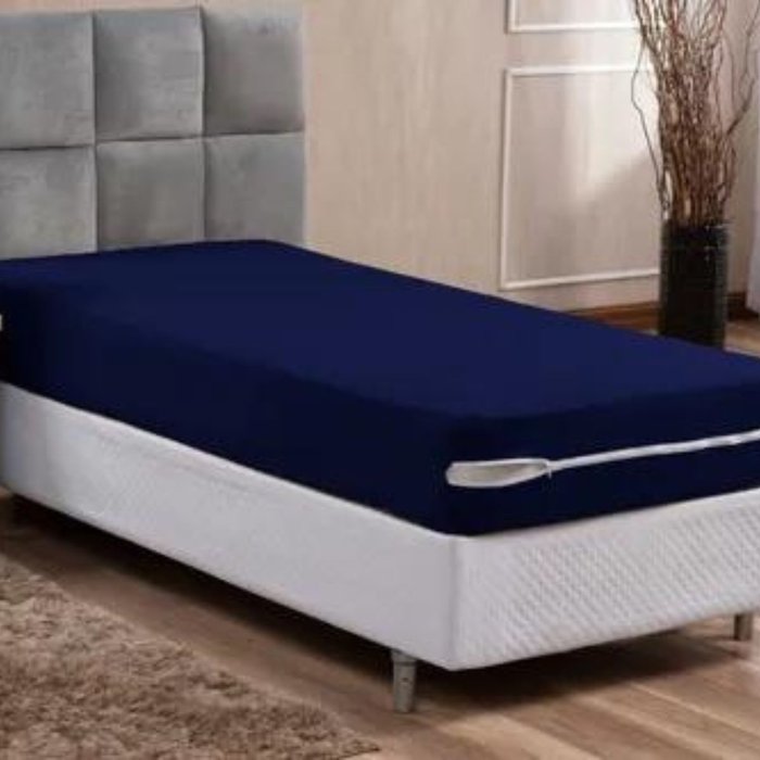 Capa Colchão de Solteiro King:azul Marinho