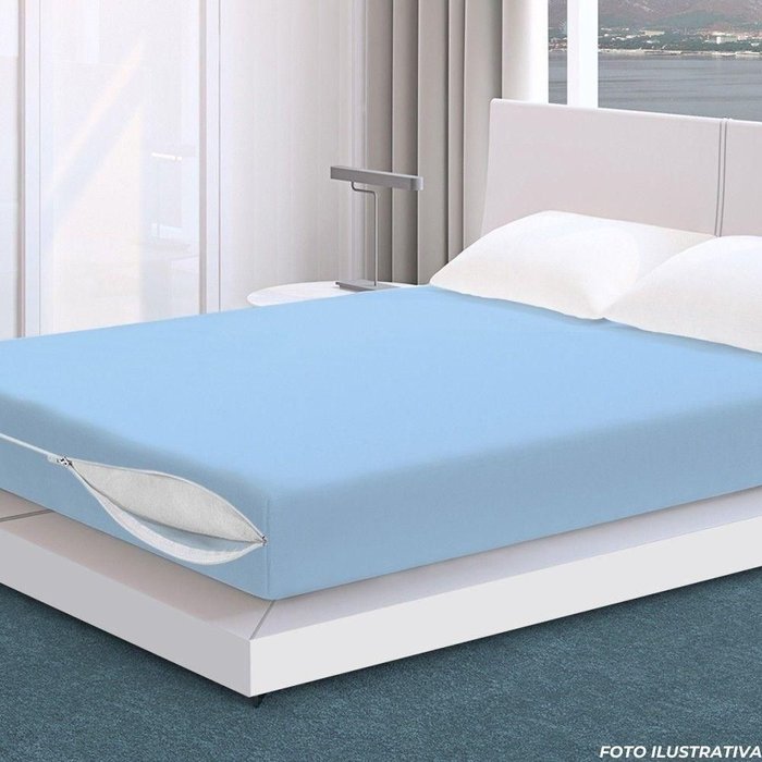 Capa Colchão Solteiro Azul com Zíper Azul