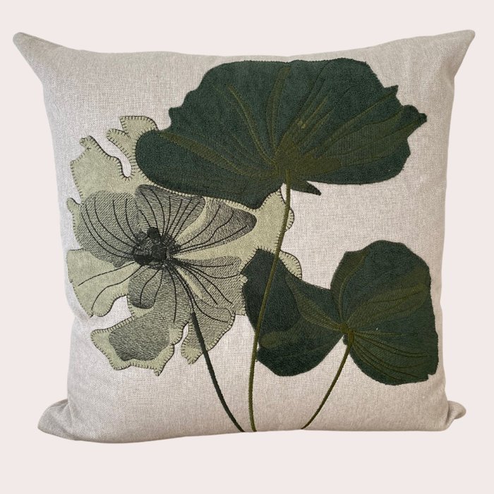 Capa de Almofada Linho Bordada Floral Verde 50cm