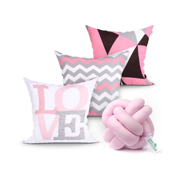 Capa de Almofada para Cama Love Rosa Estampada Decorativa Kit 3 Capas 45cm x 45cm + Almofada Nó Esca