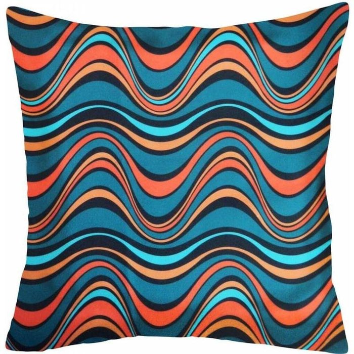 Capa De Almofada Suprema 50x50cm Ondas Azul E Laranja