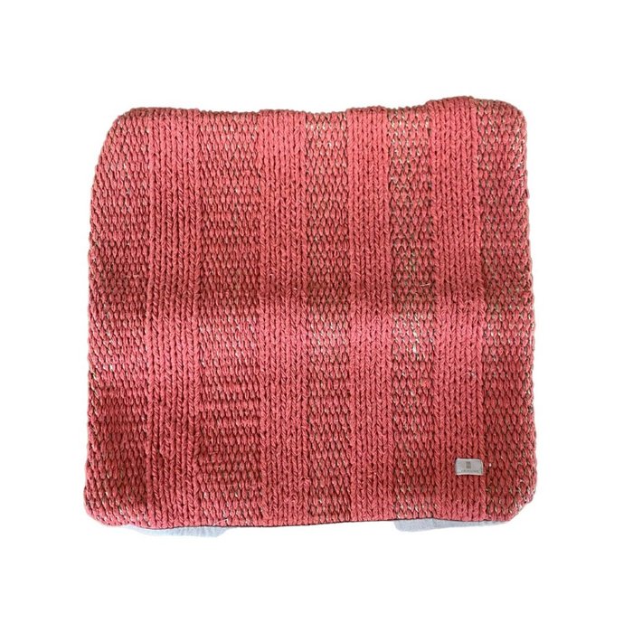 Capa de almofada em algodão com sisal, produzida em tear manual, na cor coral, tamanho 50x50cm.