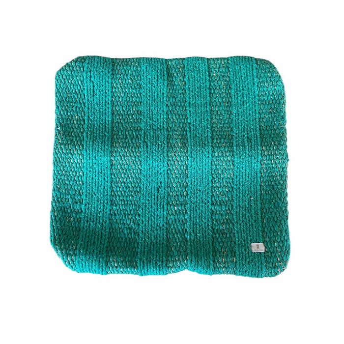 Capa de almofada em algodão com sisal, produzida em tear manual, na cor verde bandeira, tamanho 50x50cm.