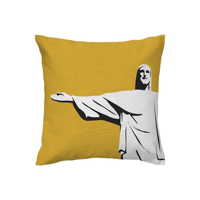 Capa de almofada VivaIN - Coleção Ícones do Brasil - mostarda Cristo mostarda