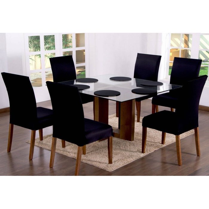 Capa de Cadeira Elástica Preta 06 Lugares Preta