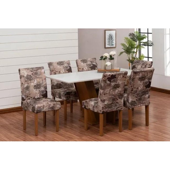 Capa de Cadeira Estampada 4 Lugares 04 Peças Flores Marrom