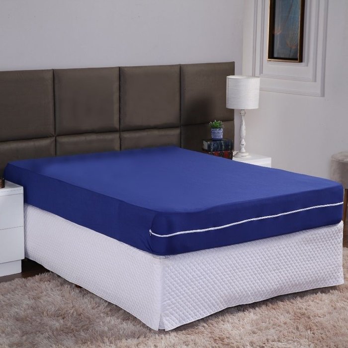 Capa de Colchão Queen 30cm com Zíper Protetor de Malha Lisa 1 Peça:azul Royal Azul Royal