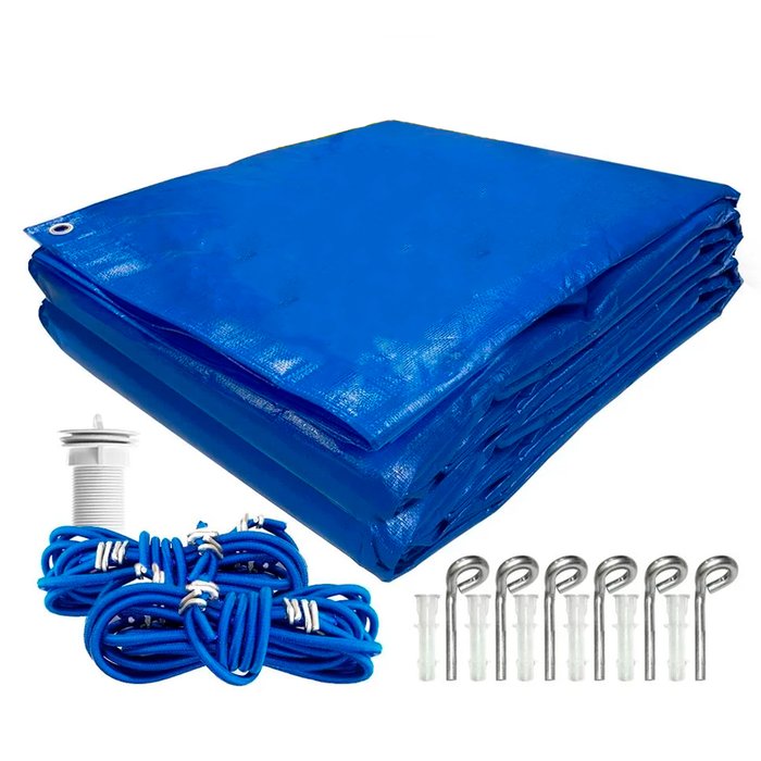 Capa de Piscina 6x3m Azul CK300 com Ilhós a cada Metro + Kit para Instalação CIKALA