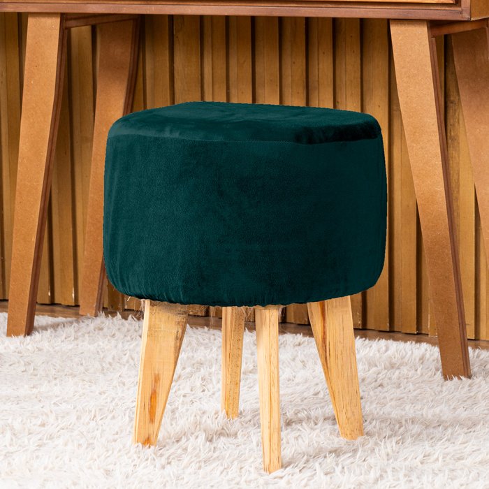Capa de Puff Redondo Médio Avulsa Lisa Ajustável com Elástico - Tecido Veludo Decoração Banquinho Lu Verde