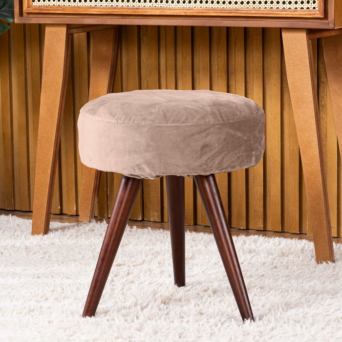 Capa de Puff Redondo Pequeno Avulsa Lisa Ajustável com Elástico - Tecido Veludo Decoração Banquinho Bege