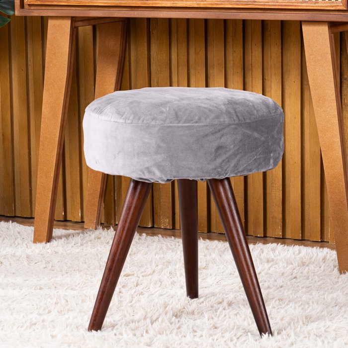 Capa de Puff Redondo Pequeno Avulsa Lisa Ajustável com Elástico - Tecido Veludo Decoração Banquinho Cinza