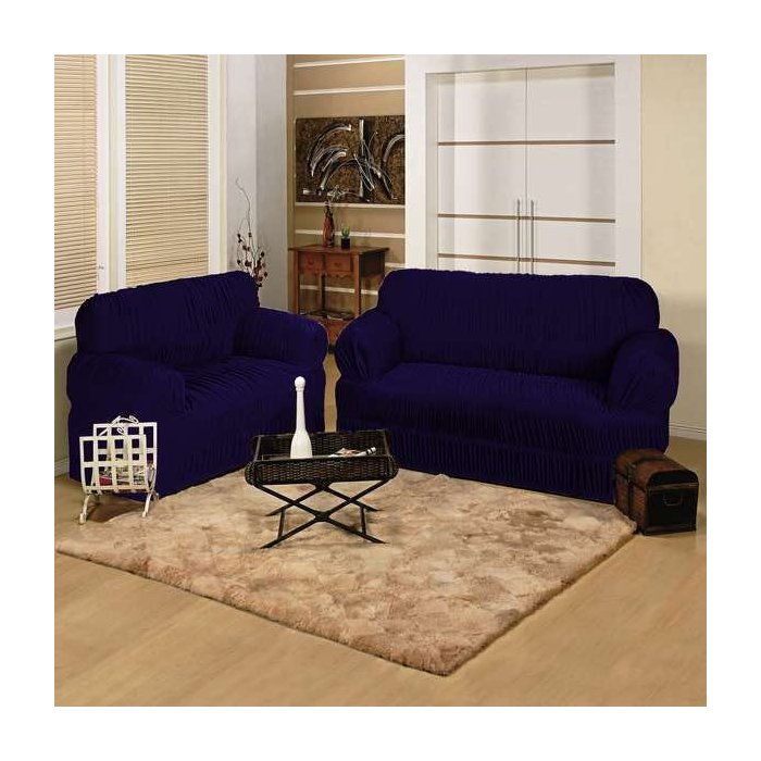 Capa de Sofà 2 e 3 Lugares Elasticada Azul Marinho