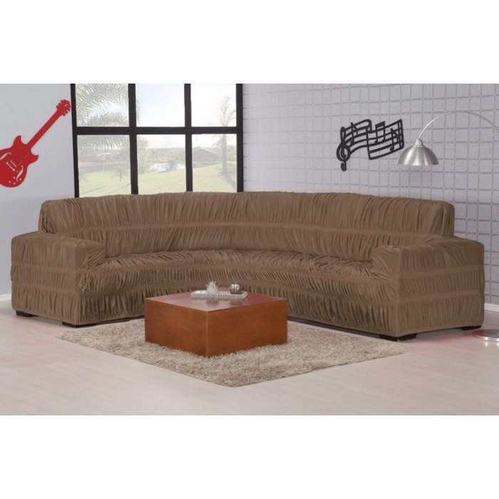Capa de sofá de Canto em malha com elástico cáqui cáqui
