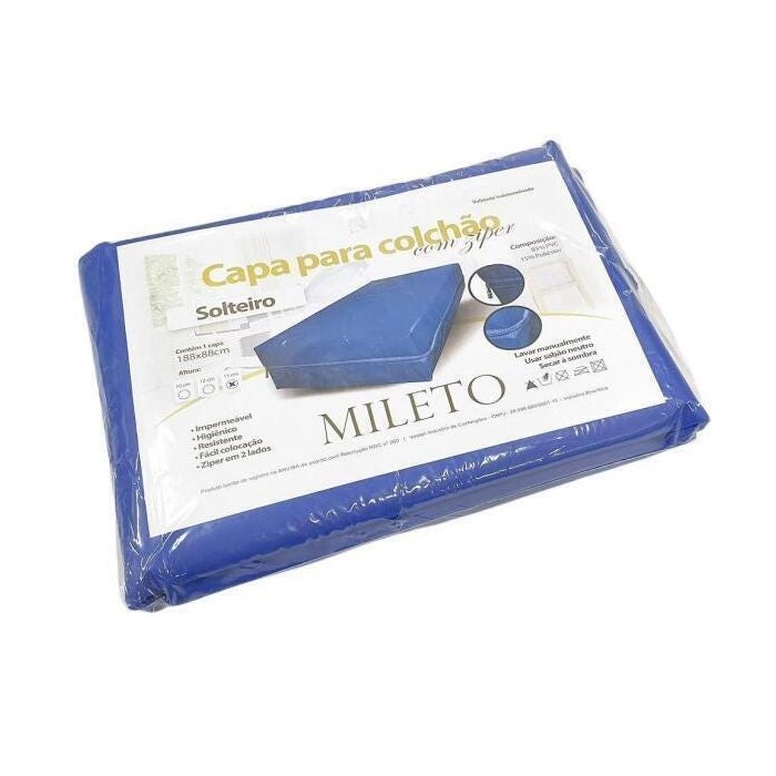 Capa Em Napa Azul Royal Com Ziper Solteiro 15cm Mileto