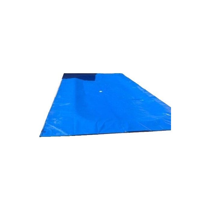 Trama de Polietileno com tripla camada;Grande resistência mecânica a rasgo;Impermeável, Anti-U.V., Anti-oxidante, Anti-fungos;Bainha reforçada com corda 5 mm;Solda térmica eletrônica com tecnologia Suíça;Corda 100% polietileno 5 mm;Pinos duplamente galvanizados;Ilhós em alumínio de 50 cm em 50 cm; (não enferrujam) Dreno de PVC central para escoamento da água da chuva ( instalado)
