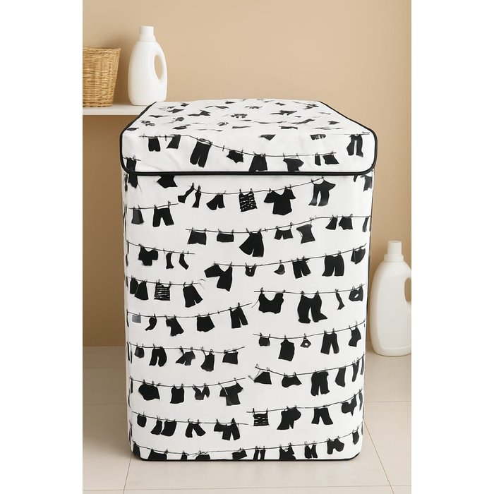 Capa Máquina de Lavar Roupa Forrada Estampada Varal - (M) 8 9 10 11 12 kilos Branco