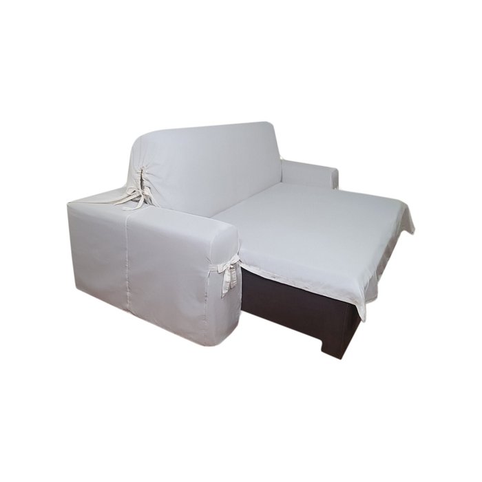 É produzida em peça única, com laços que possibilitam o ajuste na lateral do encosto e na frente dos braços. Os botões na parte da frente, quando abertos, liberam o tecido que irá proteger os assentos estendidos.